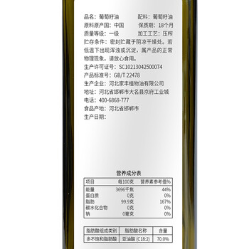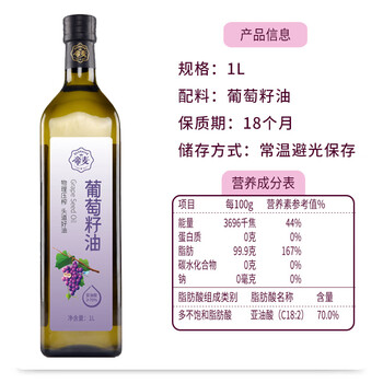 帝麦 食用油 物理压榨葡萄籽油1L 热门商品