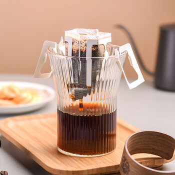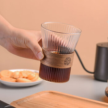 CLITON挂耳咖啡杯日式竖纹防烫玻璃杯子茶杯家用高颜值拿铁大容量浓缩杯
