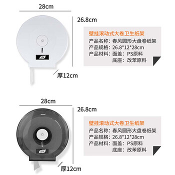 春风酒店卫生间纸巾盒大卷纸盒(黑色)厕所纸巾架免打孔壁挂式大盘纸盒