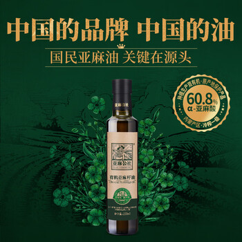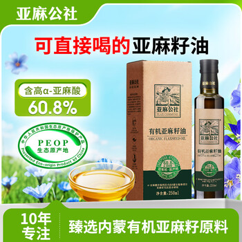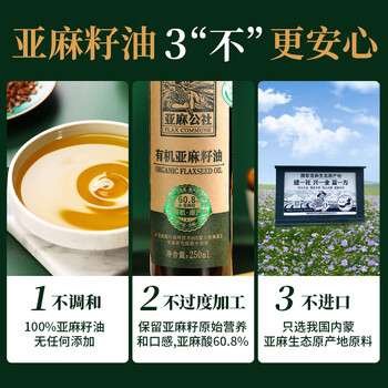 亚麻公社有机亚麻籽油250ml 一级冷榨直接喝直饮口服含omega3亚麻油