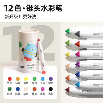 美乐童年儿童水彩笔12色巨可水洗绘画画笔小学生幼儿园无毒锥头彩笔
