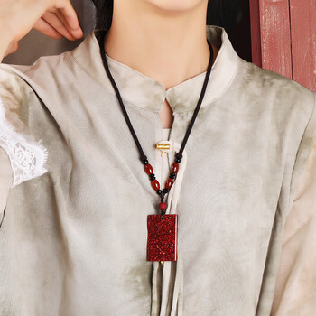 豆蔻时光大号精品透光晶体朱砂平安无事牌吊坠本命年护身符项链男女款