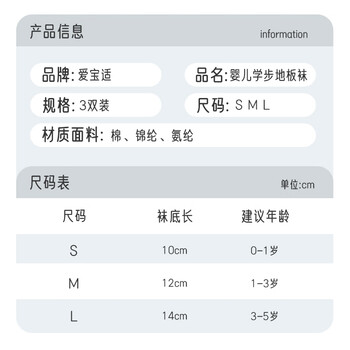 爱宝适婴儿袜子春秋宝宝学步地板袜防滑隔凉脚套儿童早教袜3双装M码S242