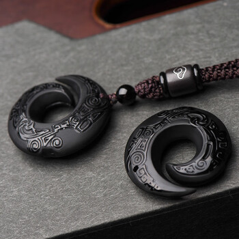 慈灵阁黑曜石吊坠时来运转项链挂件饰品平安扣潮玉坠男女护身符玉佩