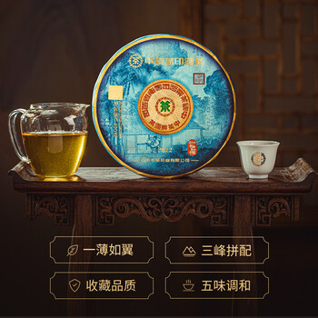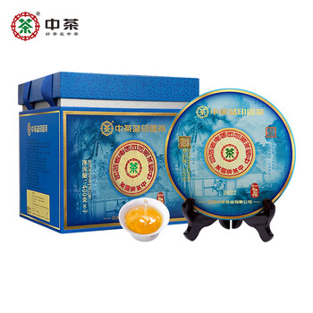 中茶普洱茶蓝印圆茶普洱生茶班章易武坝糯三峰饼茶400g*7饼整提