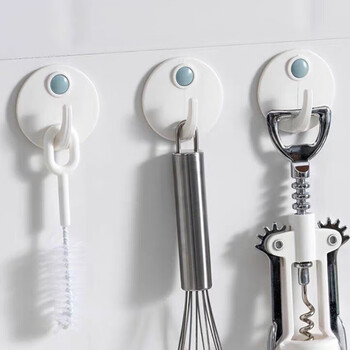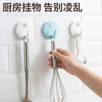 茶花厨房挂钩贴钩 免打孔浴室衣服毛巾挂钩强力粘钩随机颜色 3只
