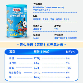 小火车(THOMAS & FRIENDS) 海苔夹心脆芝麻味 儿童宝宝零食休闲酥脆夹心即食紫菜40g