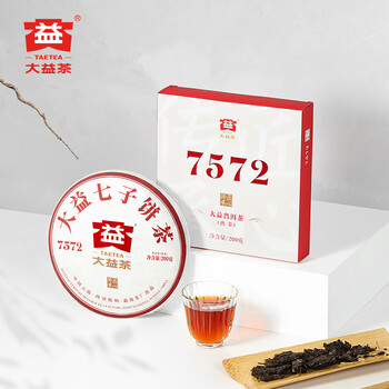 大益TAETEA茶叶普洱茶熟茶5年陈化7572饼茶盒装200g经典标杆口粮茶