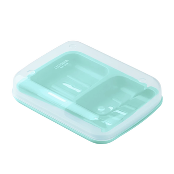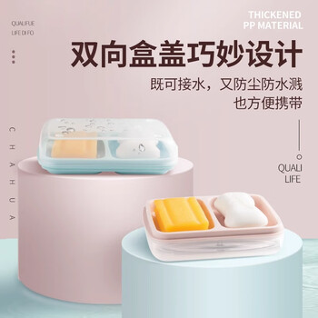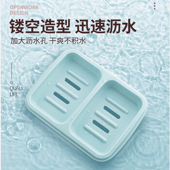 茶花肥皂盒 香皂架子皂碟 香皂盒子双格沥水香皂盒子 蓝色 1只装