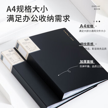 得力(deli)NS192 纽赛A4透明试卷夹档案文件夹插页袋60页编码资料册报告单文件收纳册学生办公 黑色 12本装