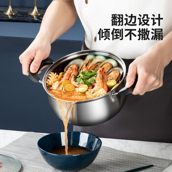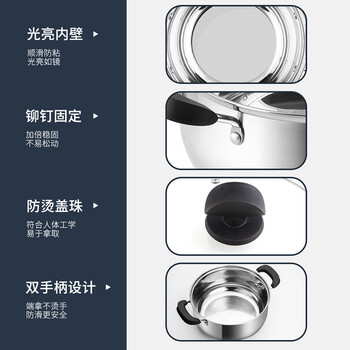 炊大皇304不锈钢汤锅+蒸屉 汤蒸炖锅蒸锅双耳煮粥煮面 22cm 电磁炉通用