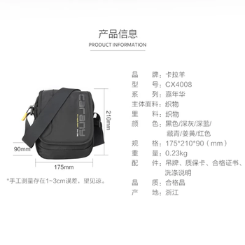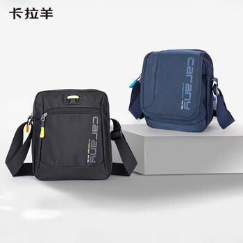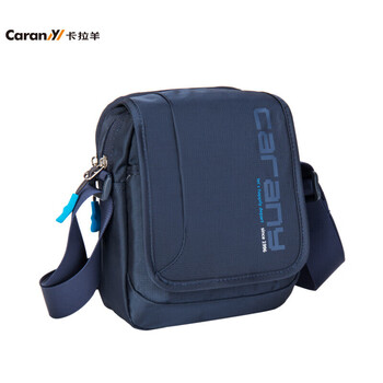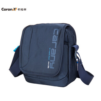 卡拉羊单肩包男士斜挎包多隔层帆布包休闲小包户外胸包CX4008藏青旅行