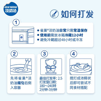 雀巢( Nestle) 烘焙原料 淡奶油 常温存储 易打发 蛋糕裱花 稀奶油 250ml*3 *1