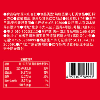如水 原味山杏仁125g/袋 坚果炒货 健康烘烤山杏仁营养休闲零食