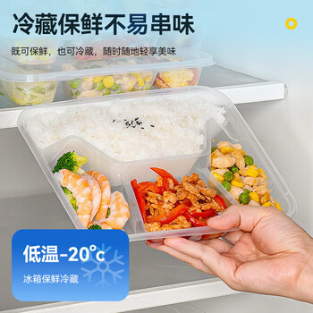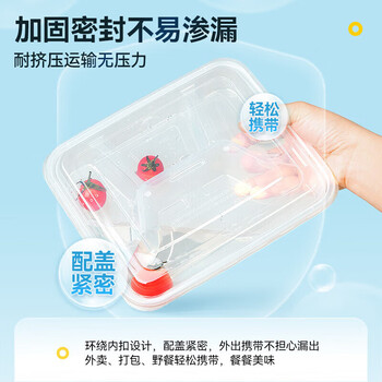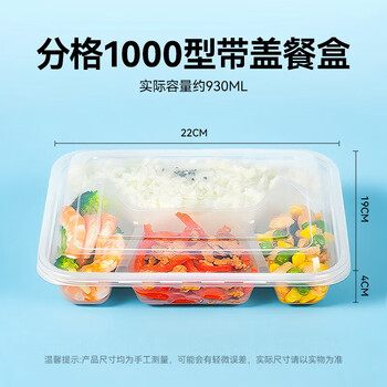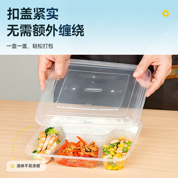 特美居一次性饭盒分格餐盒四格带盖加厚打包盒食品级可微波1000型150套