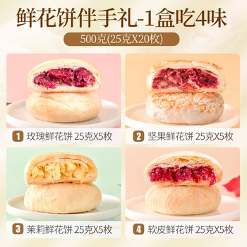 潘祥记鲜花饼玫瑰花饼礼盒云南特产糕点心零食 4口味20枚500g礼盒