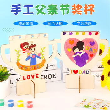 乐童童 父亲节木质奖杯儿童手工diy制作绘画涂鸦木版画幼儿园玩具 50个起拍