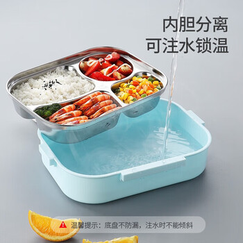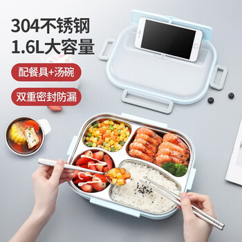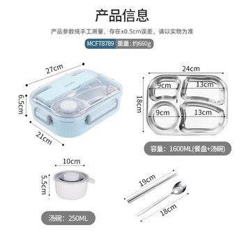 美厨(maxcook)304不锈钢饭盒 加大加深4格学生饭盒餐盘1.6L 配餐具汤碗MCFT8789