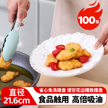 美厨(maxcook)一次性吸油纸烹饪纸烘焙纸隔油纸烧烤纸花边21.6cm 100张MCPJ7033
