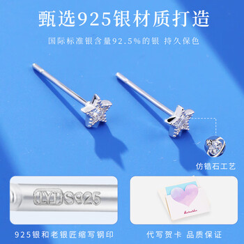 老银匠s925银耳钉女五角星耳钉星星耳钉送闺蜜不易过敏养耳洞银耳饰
