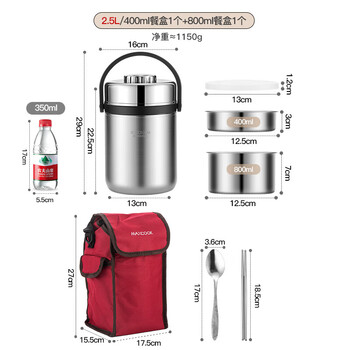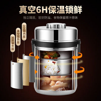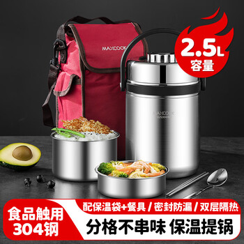 美厨(maxcook)304不锈钢保温饭盒提锅2.5L大容量真空保温桶学生便当盒个MCTG887