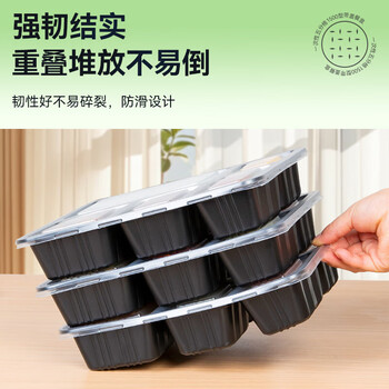 特美居(temeiju)一次性饭盒五格吸塑餐盒加厚带盖打包盒分格150套装1500型可微波