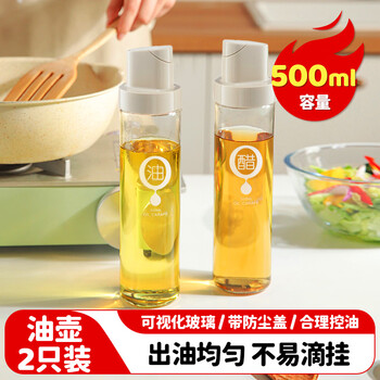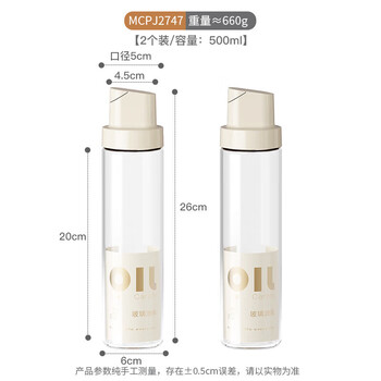 美厨(maxcook)自动开合油壶 玻璃油壶500ML 调料瓶酱油醋瓶 2只装MCPJ2747