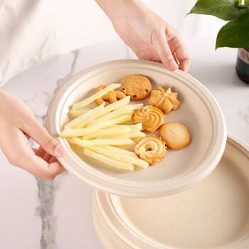 佳茉甘蔗浆纸盘纸碗一次性餐具防水防油本色可降解圆盘9英寸-20只装