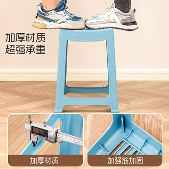 禧天龙 防滑塑料板凳凳子 方凳高凳 加厚耐磨家用餐椅子 换鞋凳镂空浴室凳 简易垫脚板凳 石青
