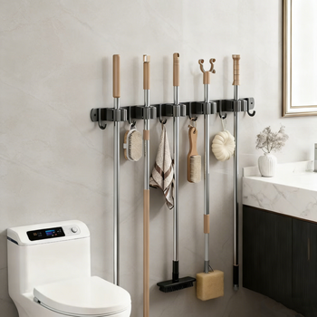 304不锈钢-拖把挂钩【4夹5钩】枪灰色