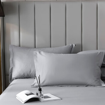 洁丽雅(Grace)7A抗菌枕套一对长绒棉纯色家用枕头套枕芯套 爵士灰48*74cm 一对