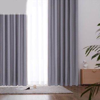 铁骥 免打孔全遮光双面麻现代简约窗帘布卧室阳台客厅学生宿舍遮光遮阳帘 220*200cm 适用窗宽2.6m-3.1m