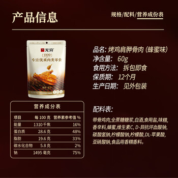 无穷即食鸡肉零食小吃熟食烤鸡肩胛骨肉蜂蜜味60g共4独立小包