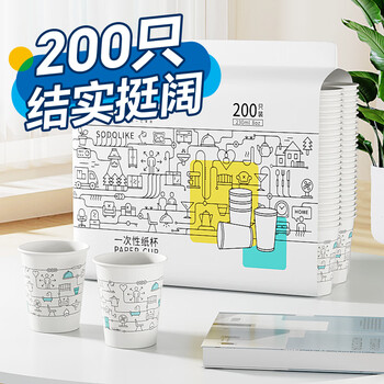 Sodolike尚岛 一次性纸杯 200只装 8盎司 环保加厚型纸杯 商务办公