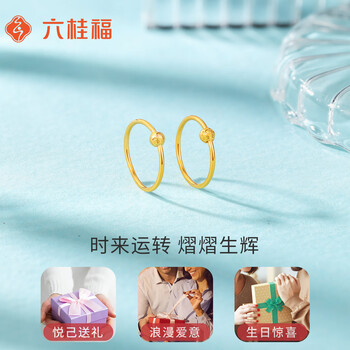 六桂福珠宝 黄18K金耳饰 转运珠 圆圈耳环彩金耳钉 EK0200011 黄18K金