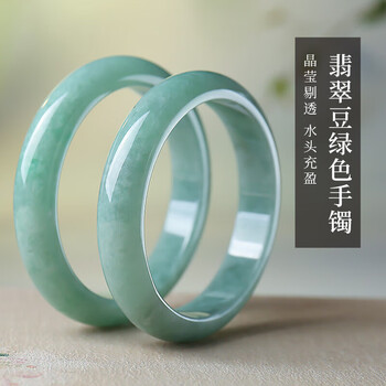 净心石A货翡翠玉手镯女款豆绿色玉镯子内径约59-60mm