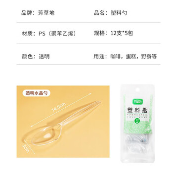 芳草地一次性勺子60支长柄西餐勺子小调羹汤勺汤匙饭勺水果蛋糕勺餐具