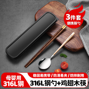 美厨(maxcook)316L不锈钢勺子木筷子餐具套装 鸡翅木筷子三件套 玫瑰金MCGC8511