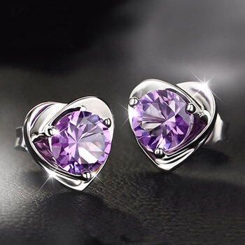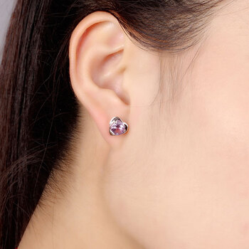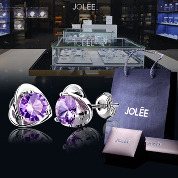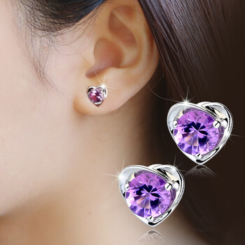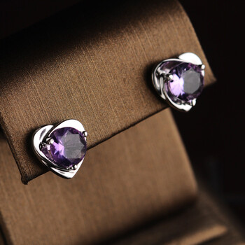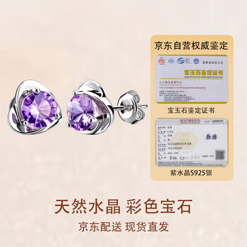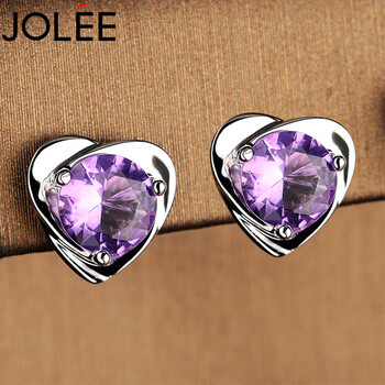 JOLEE耳钉女S925银爱心简约天然紫水晶彩宝耳坠饰品送女生节日礼物