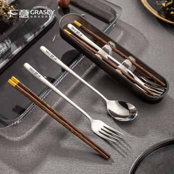 广意筷子 餐具学生316不锈钢筷子勺子套装上班族专用 便携餐具 GY7928