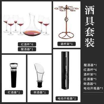 酒杯*6 醒酒器*1 电动开瓶器*1 酒杯架*1 倒酒器*1 瓶塞*1
