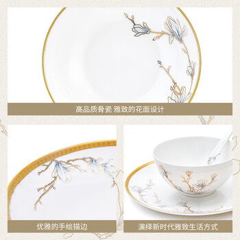 玛戈隆特骨瓷餐具碗碟套装珐琅彩轻奢高端中式家用6人份36头