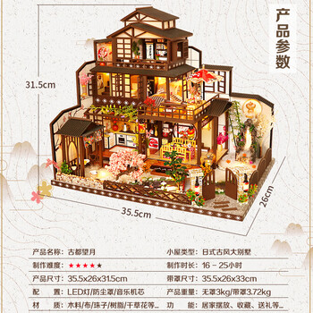 我の屋日式DIY手工小屋古都望月大型房子玩具八音盒小房子男女生日礼物