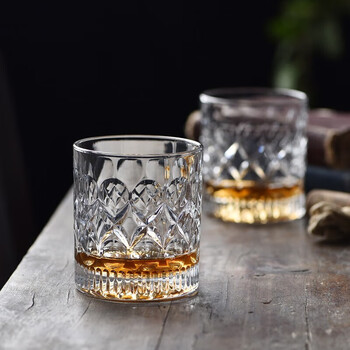 青苹果雕花玻璃威士忌洋酒杯280ml两只 轻奢白酒杯啤酒KTV会所家用