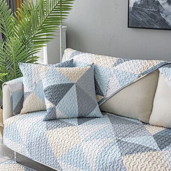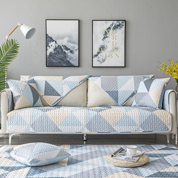 艾薇沙发垫防滑四季纯棉沙发套罩巾盖布飘窗垫90*160两人座 几何蓝