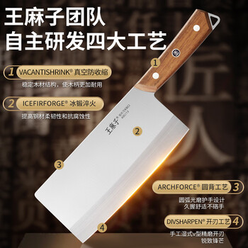 王麻子刀具套装 抗菌木柄厨房刀具全套家用菜刀组合 砍骨切菜多用刀水果刀剪刀【小户型标配】