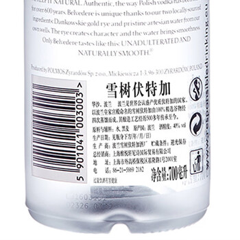 雪树伏特加(Belvedere Vodka)洋酒 波兰伏特加基酒调酒40度700ml