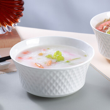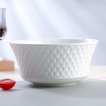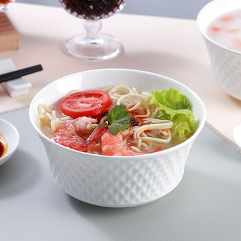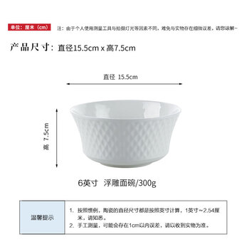 斯凯绨(Sky Top)面碗陶瓷骨瓷汤碗纯白浮雕碗家用餐具6英寸璀璨4件套装