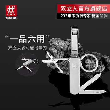 双立人(ZWILLING)多功能指甲剪指甲钳折叠式指甲刀迷你水果刀钥匙扣德国品牌银色