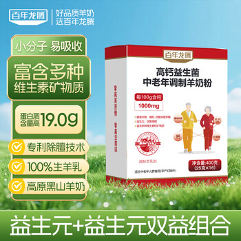 百年龙腾中老年羊奶粉高钙益生菌膳食纤维无膻味条装0蔗糖成人奶粉400g/盒